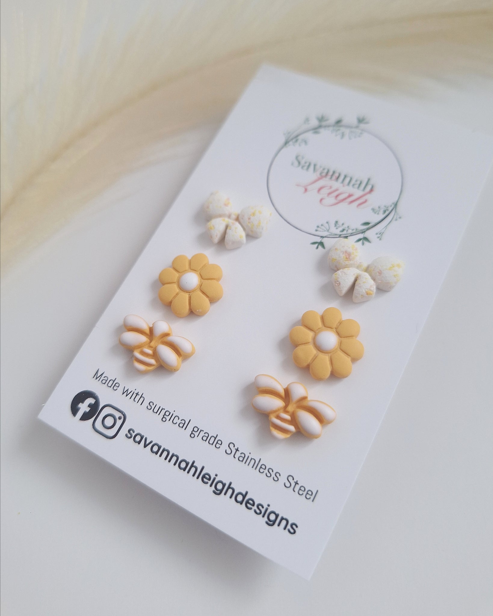 Made with lightweight and durable polymer clay on stainless steel earposts